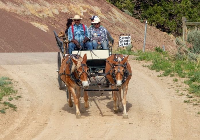 On Saturdays, Nine Mile Canyon Ranch offers horse drawn wagon rides and horseback riding, provided by Randy and Alicia Melton.
