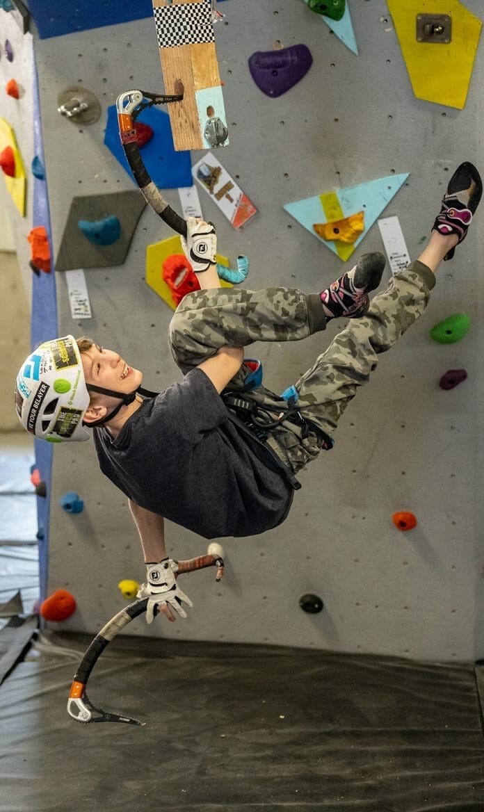 Already a rock climber, he wanted to try dry tooling because his mother is an ice climber, so he joined The Scratch Pad and has been excelling ever since.