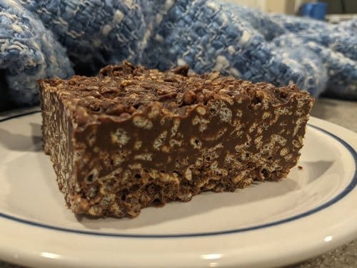 Pull up parchment paper from 8×8 dish and slide Chocolate Crunch Bars onto cutting board. Chocolate Crunch Bars are very rich so cut into small pieces and enjoy.
