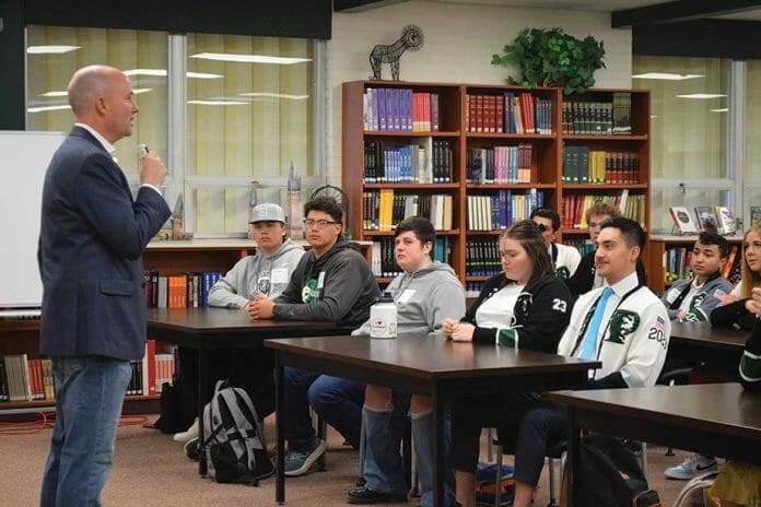 Utah Governor Spencer Cox visited Payson School during his educational tour on April 19. While there, he took time to meet with all of the student leaders and was available to answer questions.