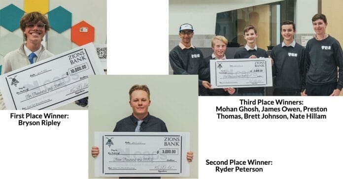 Three ALC CAPS (Center for Advanced Studies) students were selected as the top finalists. First place went to Bryson Ripley’s business titled SilverWear, which is unique jewelry created from metal eating utensils. That proposal earned $10,000. Second place went to Ryder Peterson for Nebo Custom Woodworks, with a prize of $3,000. Third place, with a prize of $2,000, went to James Owen, Mohan Ghosh, Preston Thomas, Brett Johnson, and Nate Hillam for their business titled, The Basement Engineers.