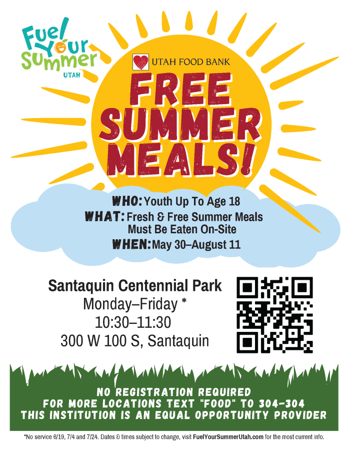 The Nebo School District is partnering with the Utah Food Bank again this year to provide free summer meals in four of Nebo School District communities. These fresh and free summer meals will be offered to children up to age 18 every Monday through Friday beginning on May 30 and ending August 11 at the following locations/times.