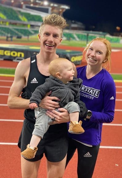 “I didn’t know for sure that I’d go back to college and compete after having the baby, but I knew I wanted to and my husband just kept reminding me that something would work out. We knew we just needed to trust God and know he had a plan for our family. Luckily running was still part of that plan because it worked out better than we could have planned. I also drew strength from others who had had babies in college and kept running at a high level.”