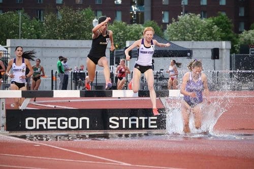 That high level included competing at The NCAA national cross country meet in March where she earned the title of All-American like her husband; making the finals at the NCAA outdoor track and field championships where she earned a school and Big Sky Conference record in the steeplechase of 9:37.48. That time qualified her for the Olympic Trials.