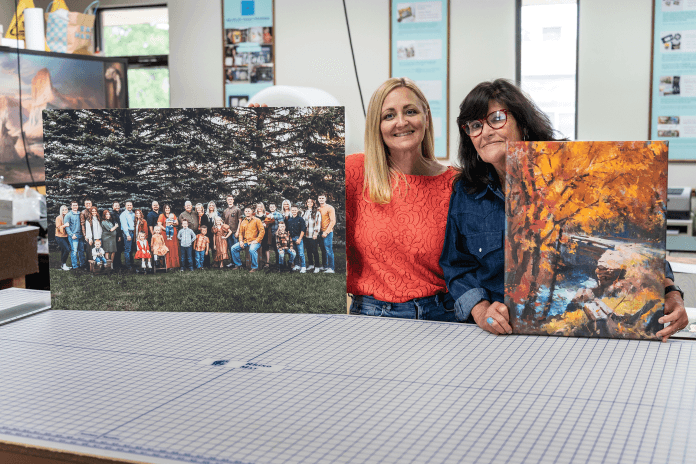 “In order to compete with that, we started doing things like large format printing, canvas, printing, posters, signage and that type of thing. And then as time went on, we also branched out into digital capture of legacy media like film, negative slide and slide scanning,” Mike said. “We started to do a lot of photo restorations where people would bring in damaged photos and we would restore those and give them a new print and we’re still in that business. We even do digital printing of T-shirts, hats, other apparel, photo gifts, and things like that. We do a lot of fine art reproductions for artists that do acrylic or watercolor paintings.”