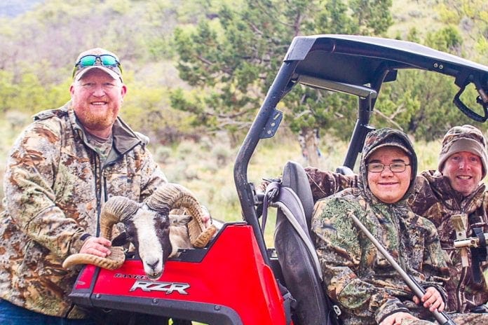 Dallas’s hunt was further facilitated with the use of Andy Dahman’s side-by-side ATV with a mounted Caldwell gun rest. Dallas’s father, Todd Branin said his son’s nickname is “Sniper” because he is such a good shot. The hunt was held on the mountain ranch property of Dave Shepherd who has a herd of Corsican Barbados Sheep for hunting. Dallas brought down the Ram with one shot to the heart.