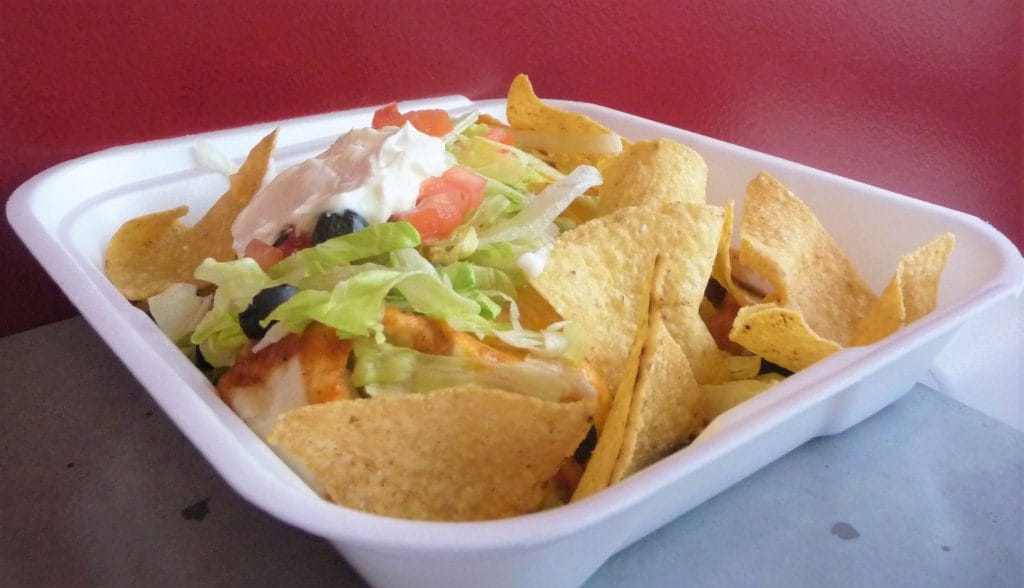 The menu is pretty straightforward. They have American favorites like hamburgers (Crabby Patties), chicken sandwiches (chicken fingers on a bun), and fries. They also offer Mexican favorites like enchiladas, smothered burritos, quesadillas, nachos, and taco salads. They focus on serving food that is made to order so it is fresh but it necessarily ready in three minutes. This isn’t a fast food place where they have premade food that they just reheat.