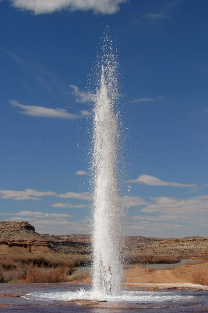 The east side of the San Rafael Swell is known for cold water geysers and two of them are nearby. Cold water geysers are driven by CO2 gas pressure rather than geothermal steam pressure. Crystal Geyser is the most famous because of its 75-foot-high eruption. However, that only happens about every 18 hours. Chaffin Geyser has a smaller eruption of about 25 feet but erupts about every hour. On the way to Chaffin Geyser, you pass Fossil Point where you can find Jurassic era fossils embedded in the ground. The museum can give you directions to either geyser and both are about an hour’s drive south of Green River on a gravel road.