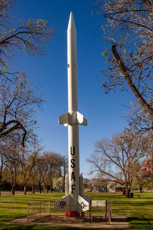 When you drive Main Street through Green River you will notice a city park on the north side of the street with a tall white missile pointed skyward. That is a reminder of the days of the Green River Launch Complex of the White Sands Missile Range. This facility was active from the early 1960s until 1975, and at its peak activity, more than 200 personnel supported the assembly, launch, and tracking of the rockets. The overflight of the rockets was an issue in the proposed legislation to create Canyonlands National Park in 1964. As an interesting side note: the author remembers as a kid Jeeping around the Utah desert seeing signs posted on back country roads of launch dates. In addition to the missile in the city park, there are other remnants around, as you east on I-70 you will notice three support buildings on the south side of the Interstate that were assembly buildings. On a bluff on the north side of the Interstate are buildings for living quarters and launch tracking. Keep in mind that the interstate did not exist at that time.