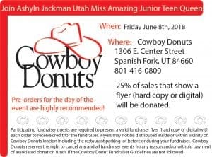 Cowbody Donuts is hosting a fundraiser to support Ashlyn’s trip to nationals on Friday, June 8, at their Spanish Fork location, 1306 E Center Street.