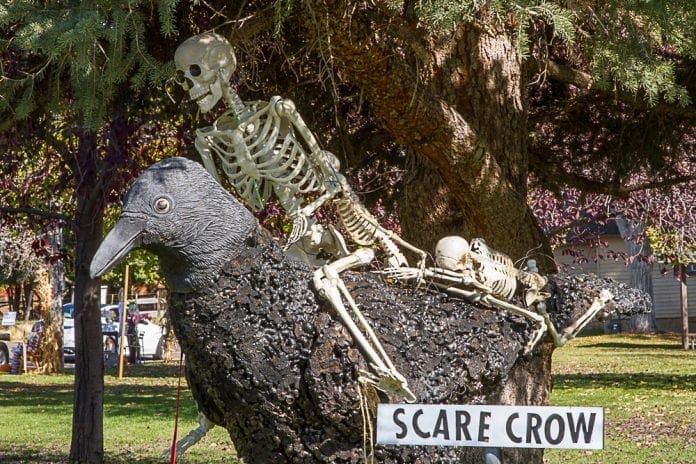 The scarecrow creations were entered in the event in five categories; Traditional, Scary, Original, Business, and Minor League (young people 15 years old and under. The opening day event included a “Giant Pumpkin” donated by Jaker’s with a contest to guess its weight and win the pumpkin. Free pumpkins were given out that were donated by Mapleton City, Jaker’s, and the Mapleton Cemetery. In the evening “Spooky Stories” were told around a campfire. The scarecrows were on display through Monday, October 23.