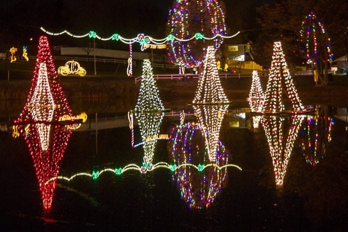 r The Salem Pond Town Christmas Light display is one of the most spectacular in Utah. What makes this annual Christmas light show so uniquely dazzling is that most of the lighted Christmas trees are on rafts on the pond’s water to provide a wonderful reflection. Like most things it started many years ago with a couple of lighted trees on rafts and has now grown into a huge display of colorful lights reflecting in the water. It is a beautiful sight to behold. In addition to so many Christmas trees that you can’t keep track of counting them, there are swans, a pelican, a wonderful nativity scene, cartoon type characters, and a lot more. It is a place of electric light eye candy.