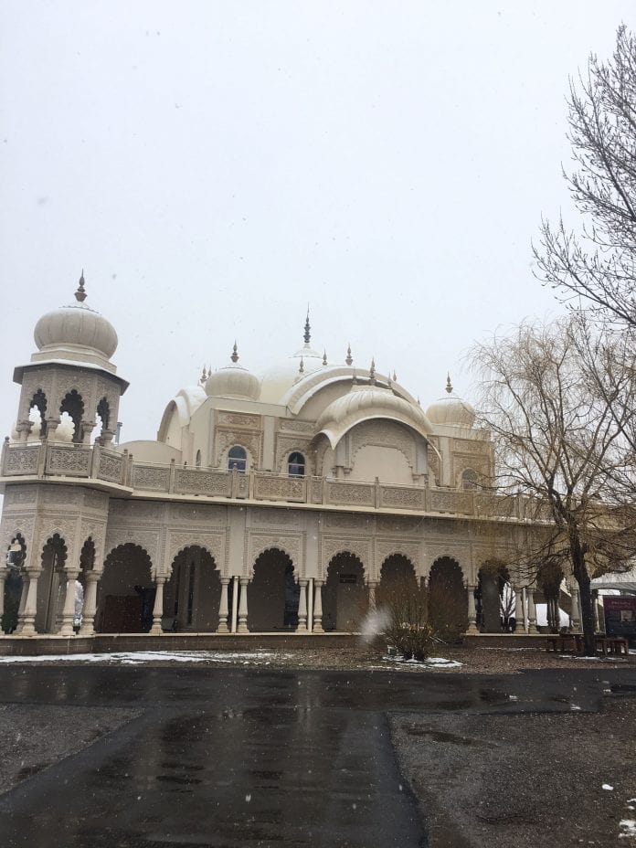 The impressive, domed exterior was built to echo many of the temples that can be found in the Rajasthan region of India. Fifty feet tall, the temple has thirteen domes and 108 spires. The many arches give a feeling of tranquility.