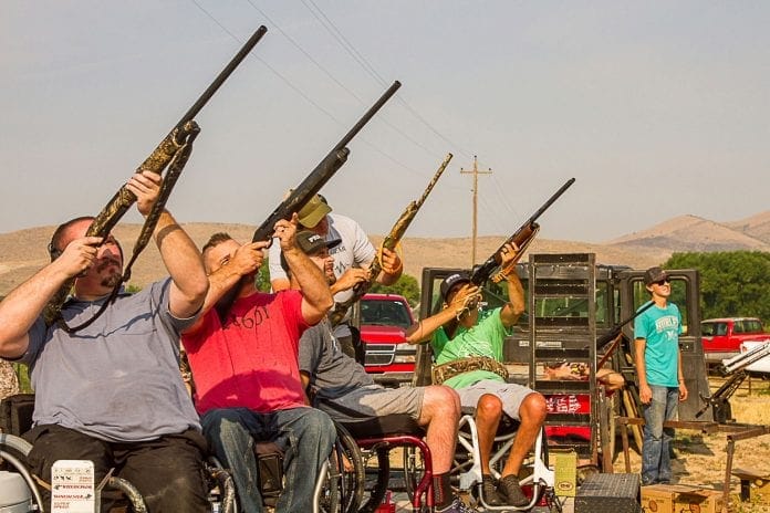 r Several times a year, the Chairbound Sportsman Organization schedules a pheasant hunt for wheelchair bound folks. Before the pheasant hunt, it is helpful to practice shooting clay pidgins catapulted into the air. For several years now Fred Barber has been hosting such an event at his Payson Farm. Fred has a long history of helping wounded warriors and handicapped sportsmen and this is the story of a wonderful Saturday morning for six guys in wheelchairs.
